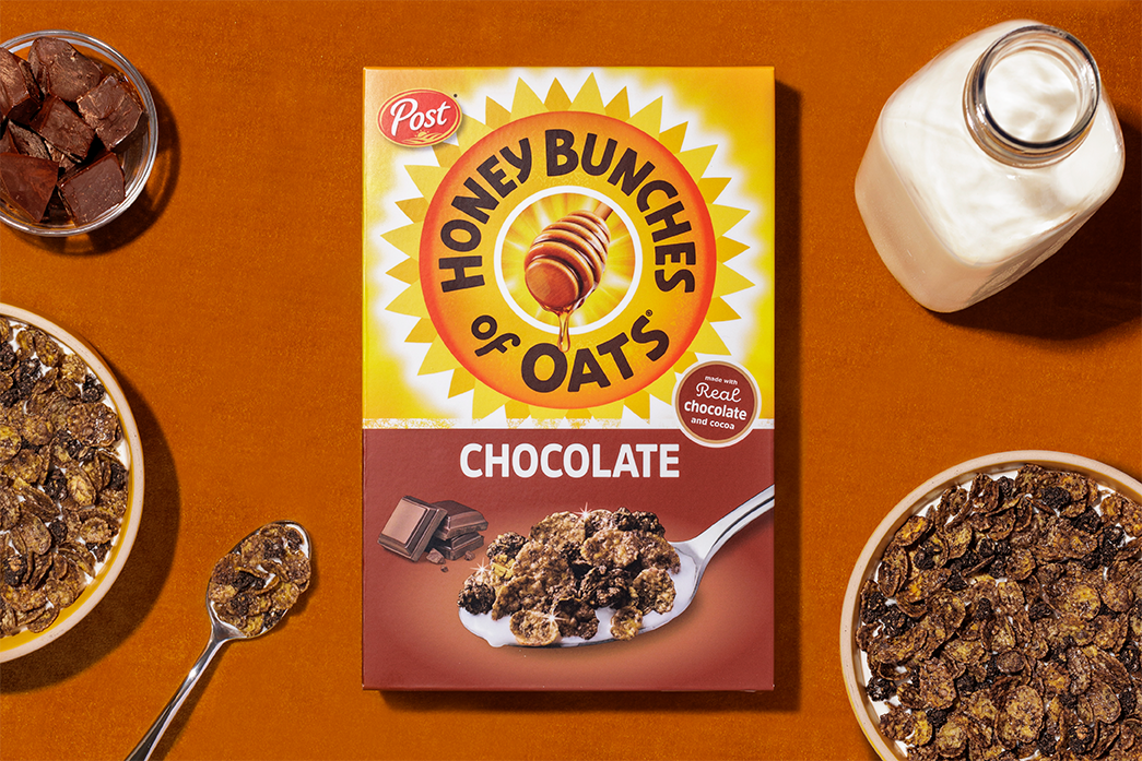Brand strategy, campaign development, and launch creative for Honey Bunches of Oats Chocolate cereal.