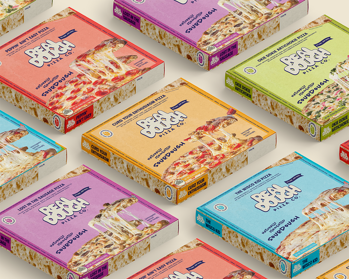 Brand strategy, identity, and packaging design for Real Dough Pizza Co.