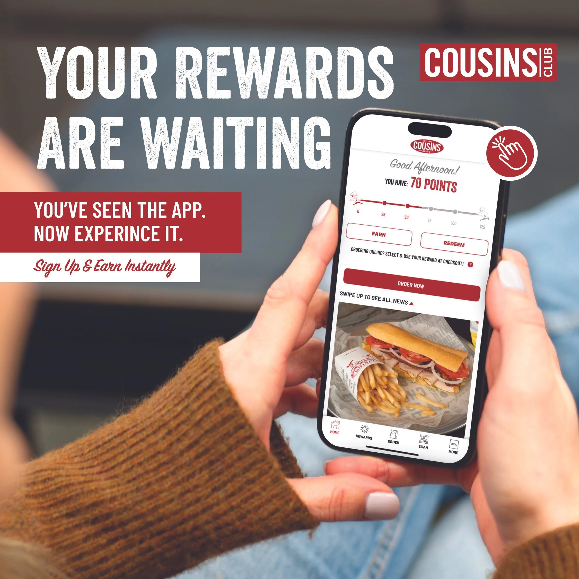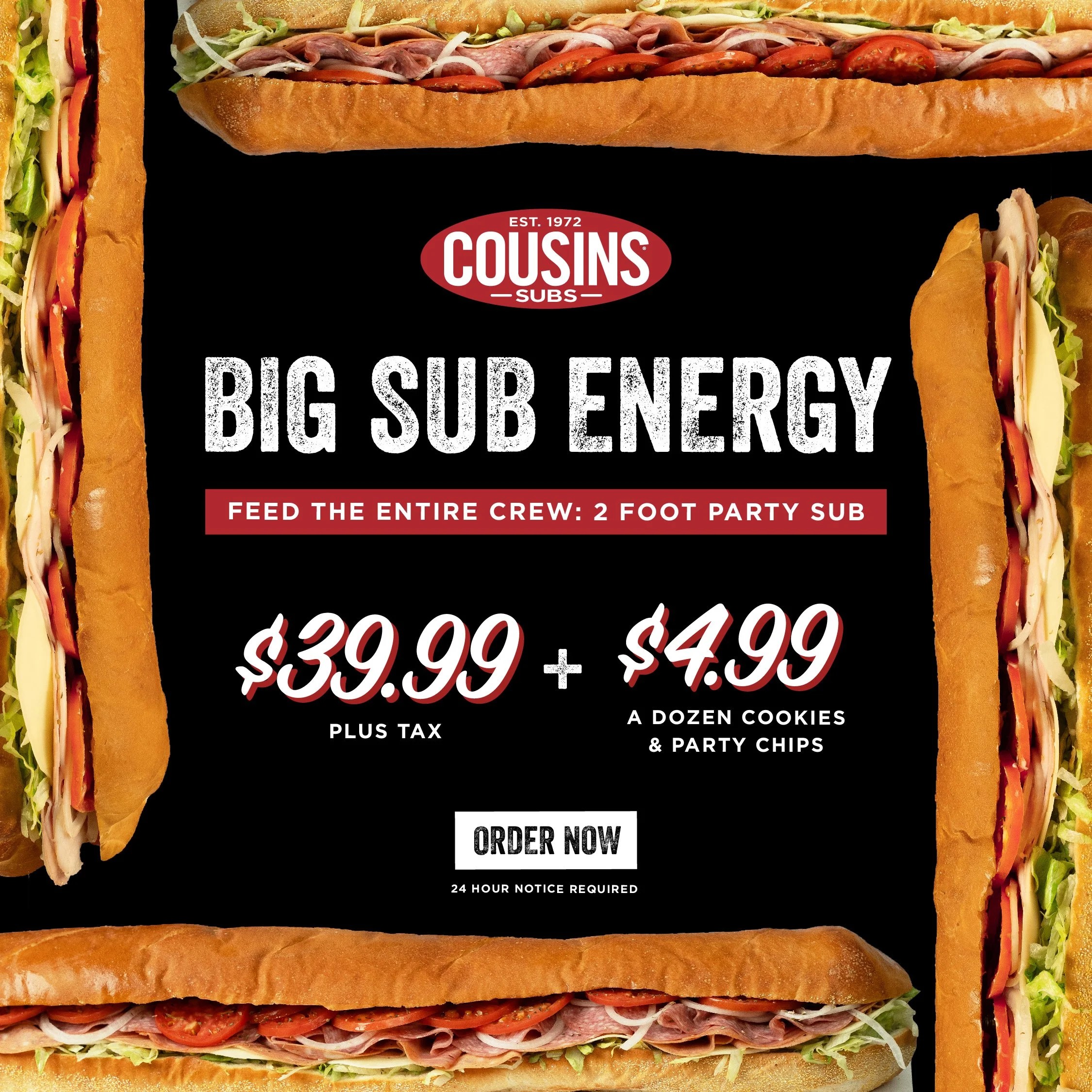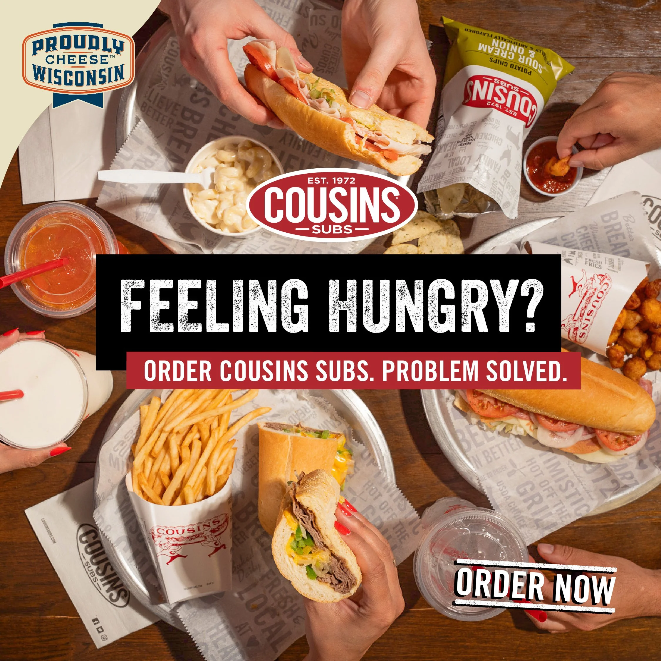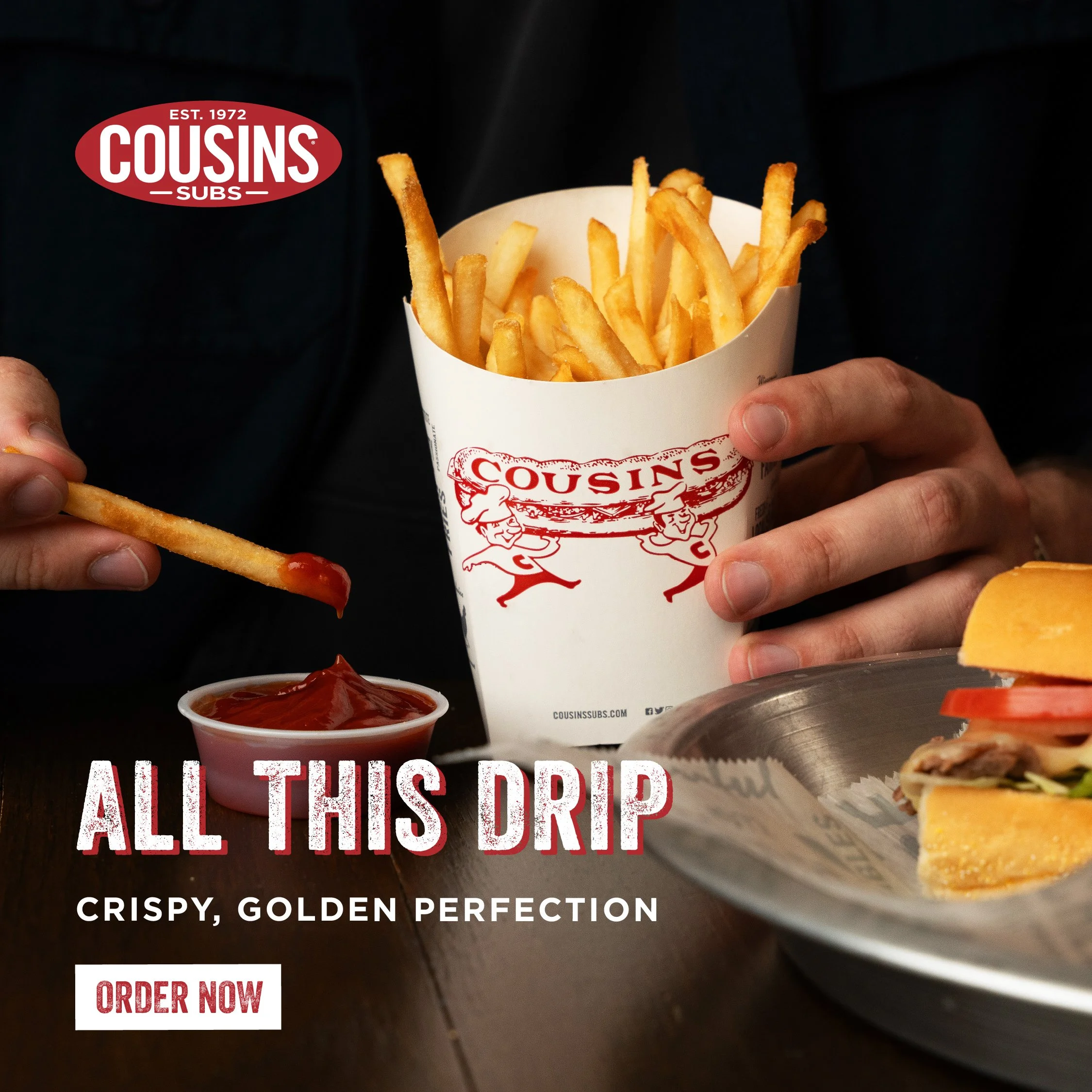 As Executive Creative Director, I built the campaign around Cousins' genuine differentiators, the things competitors simply can't claim. Four flavors of bread baked in-house daily, and sides that actually earn attention: fries, cheese curds, the kind of menu items that make a lunch decision feel like a real choice rather than a default.
