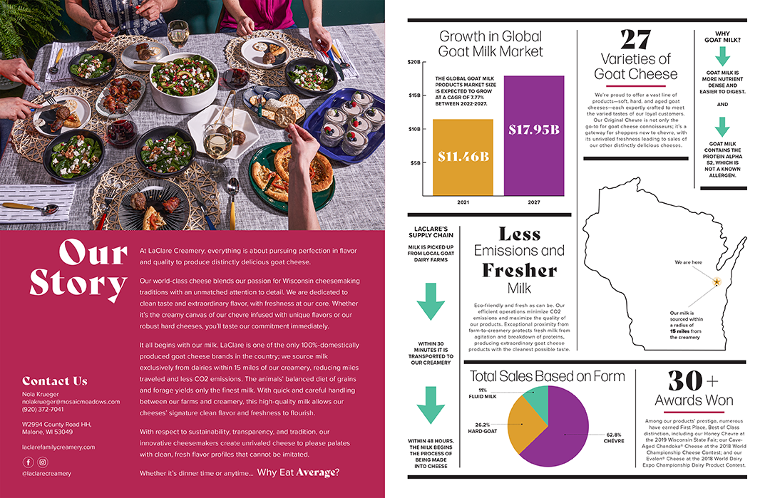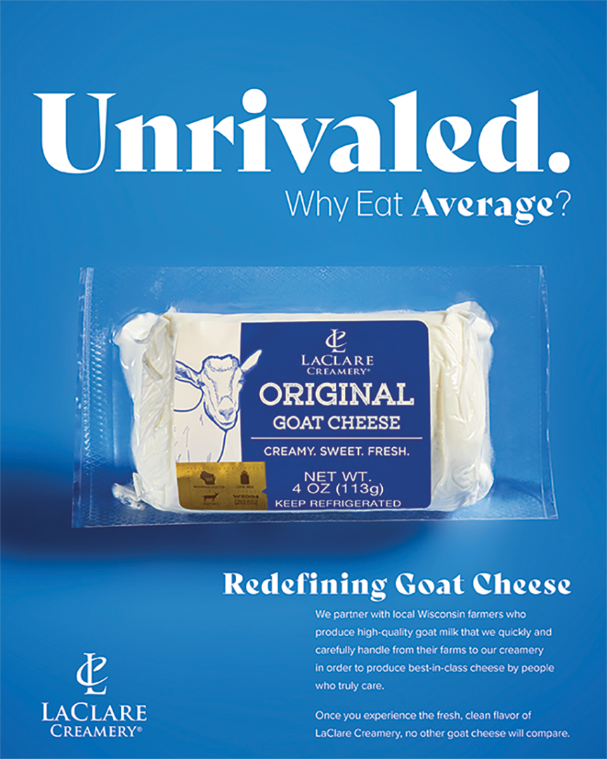 LaClare Creamery is a national leader in specialty goat cheese, a brand with genuine product quality and a loyal following, but one that needed a creative platform strong enough to match its ambitions. The goal was to build stronger consumer awareness, drive product trial, and firmly establish LaClare as the definitive voice in the specialty cheese category.